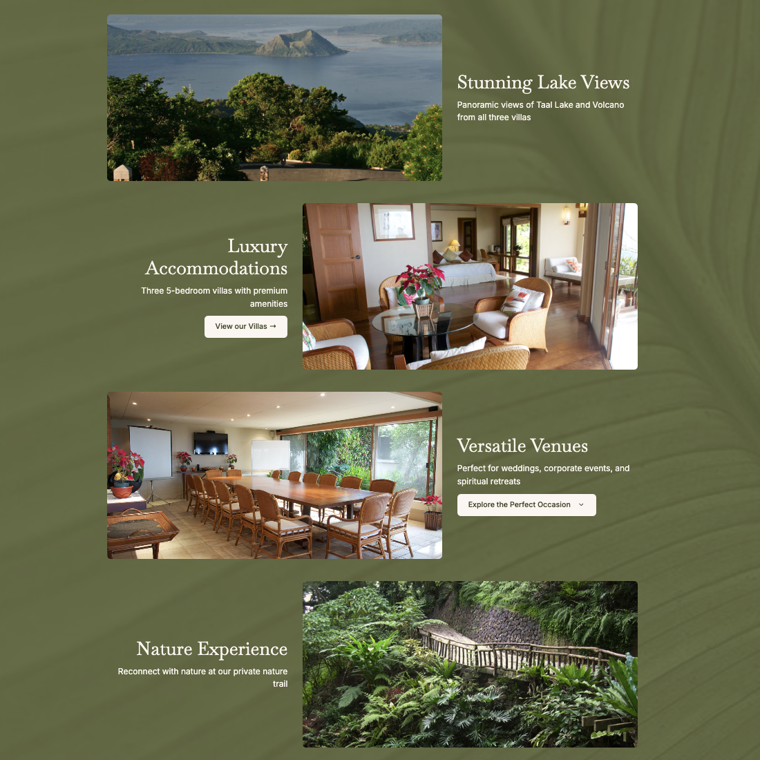 Modern, SEO-optimized website for a multi-purpose event space venue in Tagaytay, streamlining inquiries and showcasing amenities.